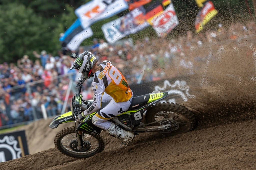Monster Energy Triumph Racing rider Camden McLellan secured his second overall podium of the season – and the third of his career – at the MXGP of Flanders with 2‑3 moto scores earning him a well earned, and overdue podium. McLellan has shown plenty of speed this season, but his well‑documented struggles with starts have often left the #8 fighting through the pack in many motos. The extreme depths of the Lommel sand actually played in his favour, which was illustrated in Moto 2, where he passed three riders collectively over the wall jump and began to set sail to reel in the top three.