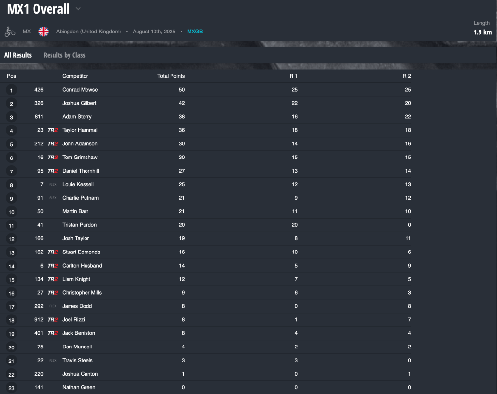 Conrad Mewse and Tommy Searle claimed the top step in the MX1 and MX2 class on a great day of racing at Landrake. Charlie Richmond made it back-to-back wins in the 125cc class as he extended his points lead.