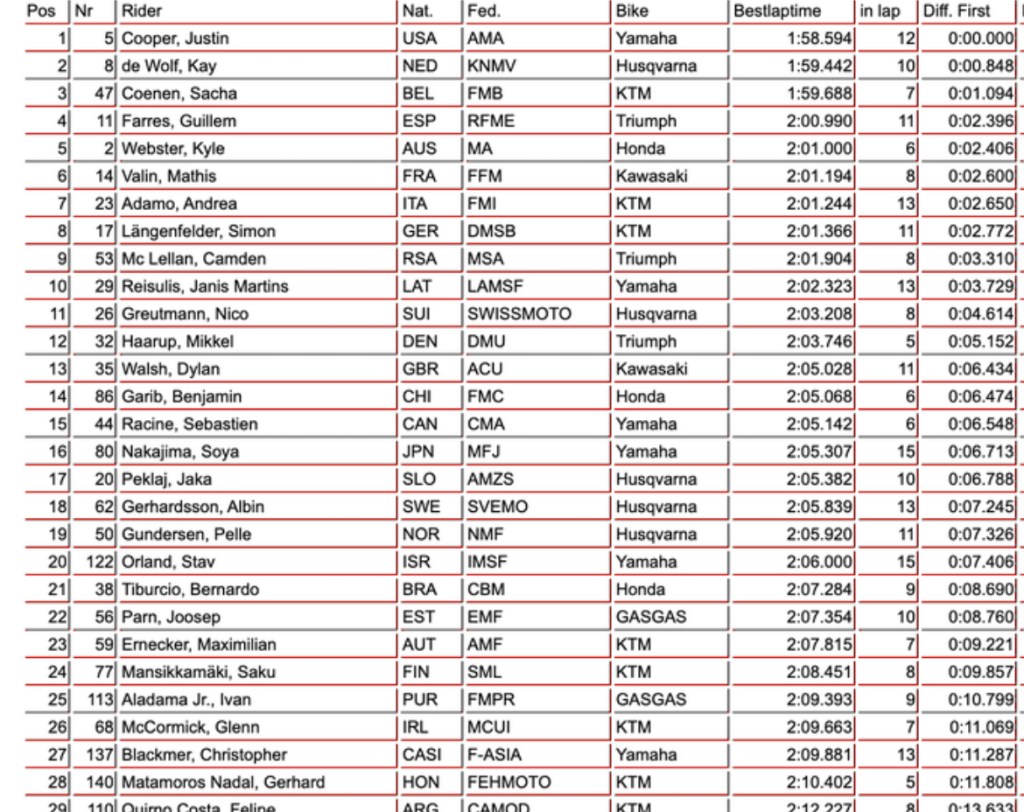 The most eagerly anticipated race of the year has arrived! The nations have hit the track for their practice sessions, and no surprise Jett Lawrence asserts his dominance from the get go! See the MXGP, MX2 and OPEN results below.