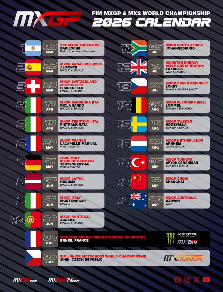 The 2026 FIM Motocross World Championship is set for 19 rounds of exciting racing across the globe! Although 20 rounds were provisionally scheduled, it has been confirmed today that there will be no Grand Prix held on 26th April, with the venue yet to be confirmed.