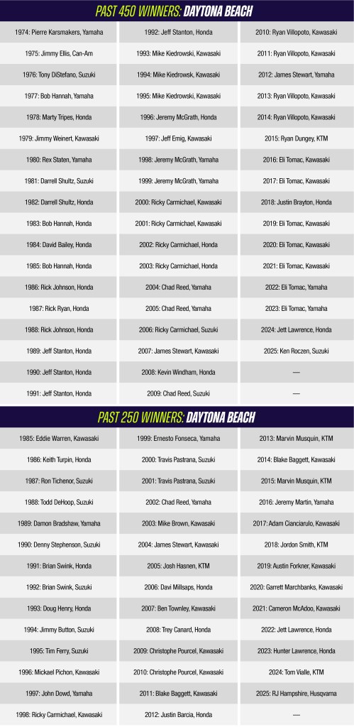 Daytona is here! Round eight of the AMA Supercross season heads to Daytona International Speedway after delivering seven pretty incredible rounds so far. Endless memorable races spring to mind when reminiscing about Daytona, but there are certain riders in the current field who have enjoyed significant success at the speedway.
